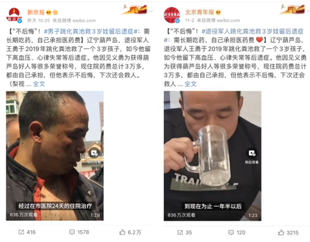 随后“男子跳化粪池救3岁娃留后遗症”的消息迅速登上微博热搜榜